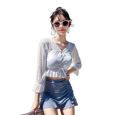 【3日出荷】無料 2点セット水着 レディース 人気 体型カバー 大きいサイズバックレス上下セット セパレート水着 着痩せ