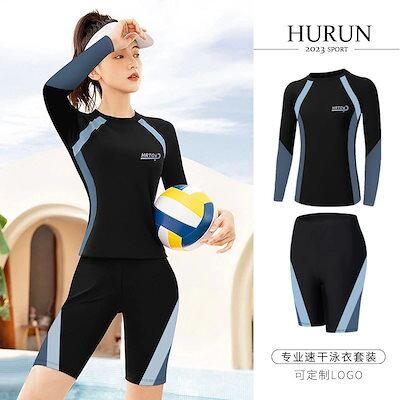 2026新品水着 レディース 体型カバー 競泳 韓国ファッション 大きいサイズ スプリット 温泉 スポーツ 長袖 クォーターパンツ
