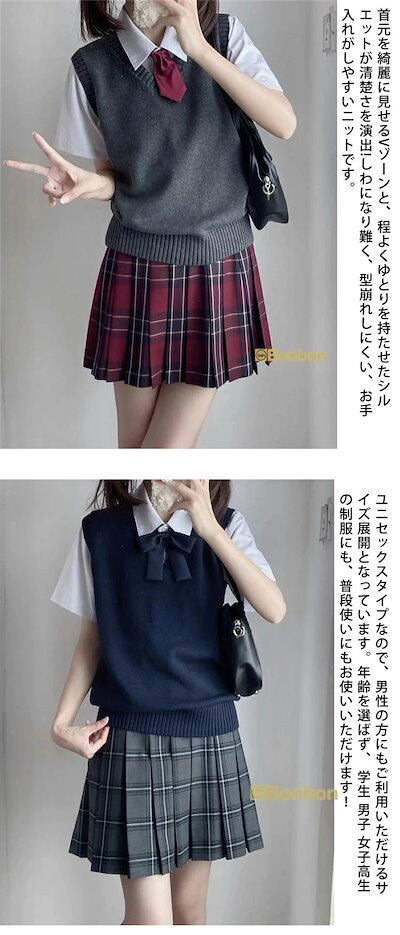 口コミで人気急上昇!スクールベスト 女子 春 夏 制服 学生服 Vネック ベスト コットン 入学準備 通学 中校生 高校生 トップス 女の子 スクールセーター ニットセーター 二ットソー 女子高生 無