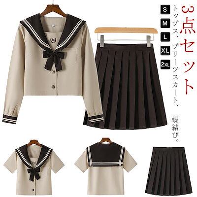 セーラー服 スカートスーツ 3点セット レディース制服 コスプレ ハロウィン コスチューム 衣装 仮装 学生服 茶色 長袖 上下セット 女子制服 JK制服 高校生 女子高生 学生 学園祭 文化祭 コス