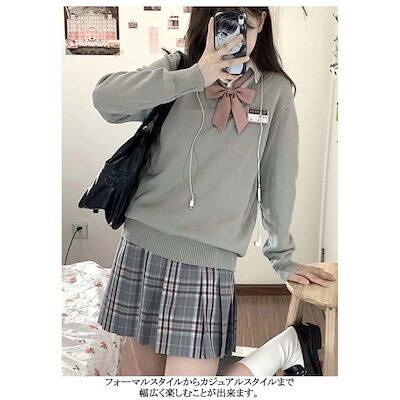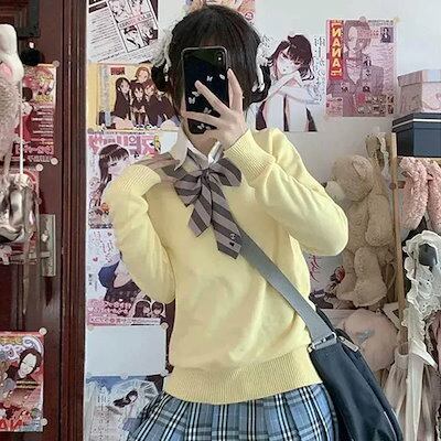 2026制服 無地 ニットセーター 女子高生 高校生 学生服 スクール セーター ケーブル編み セーター Vネック ニット スクールセー
