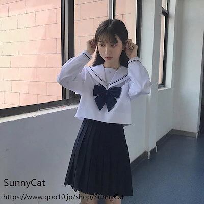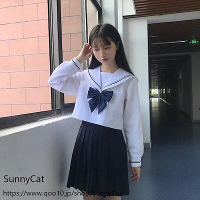 制服 セーラー服 ホワイト 二本 3点セット 長袖 半袖 スカート春 夏 秋 JK 制服 スカート 45cm プリーツスカート スクール 制服 女子高生 学生服 通学 文化祭
