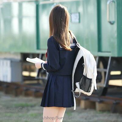 制服 セーラー服 紺色 白三本 3点セット 長袖 半袖 スカート春 夏 秋 JK 制服 スカート 45/65/75cm プリーツスカート スクール 制服 女子高生 学生服 通学 文化祭 コスプレ