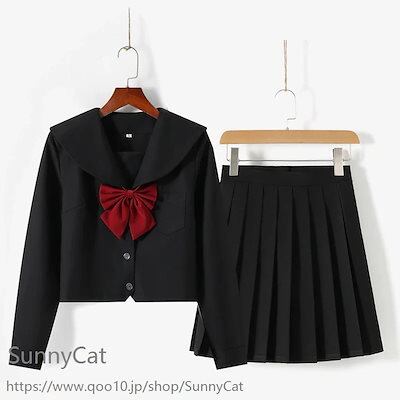 制服 セーラー服 黒 3点セット 長袖 半袖 スカート春 夏 秋 JK 制服 スカート 45/65/75cm プリーツスカート スクール 制服 女子高生 学生服 通学 文化祭 コスプレ
