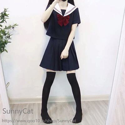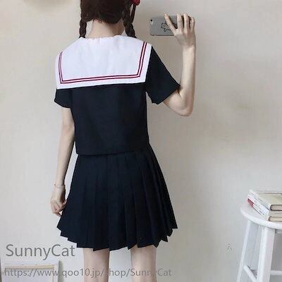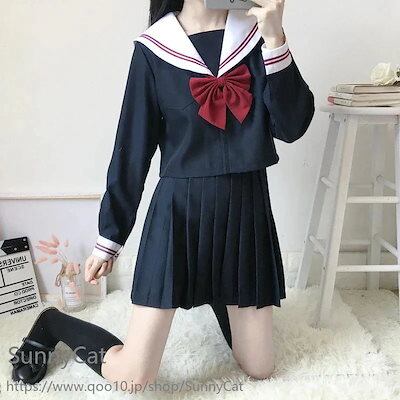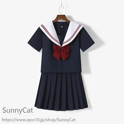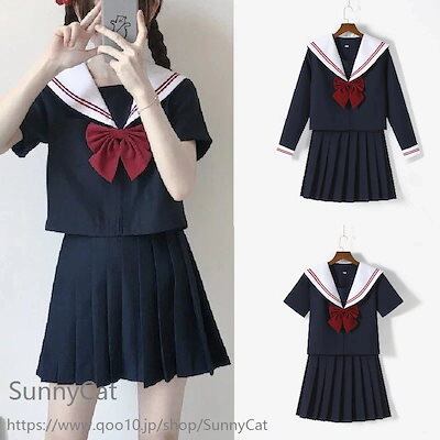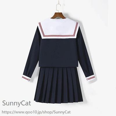 制服 セーラー服 白い襟 赤二本 3点セット 長袖 半袖 スカート春 夏 秋 JK 制服 スカート 45/65/75cm プリーツスカート スクール 制服 女子高生 学生服 通学 文化祭 コスプレ