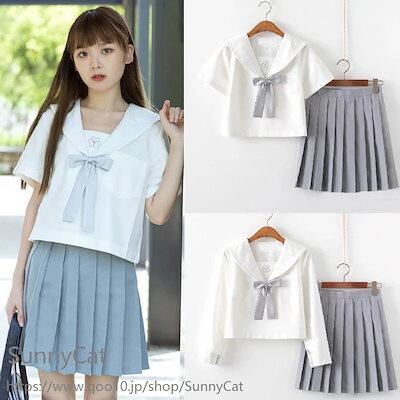 制服 セーラー服 クローバー柄 3点セット 長袖 半袖 スカート春 夏 秋 JK 制服 スカート 45cm プリーツスカート スクール 制服 女子高生 学生服 通学 文化祭