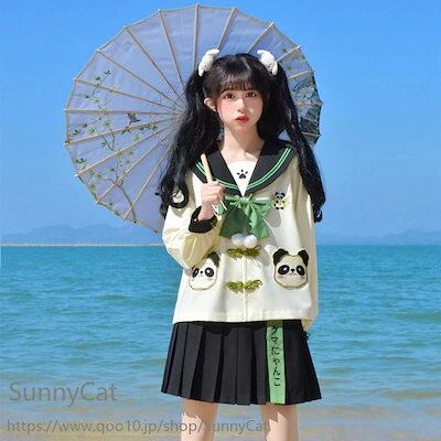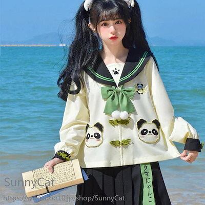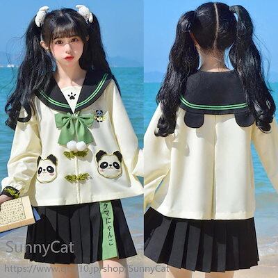 制服 セーラー服 可愛い パンダ 3点セット 長袖 半袖 スカート春 夏 秋 JK 制服 スカート 43cm プリーツスカート スクール 制服 女子高生 学生服 通学 文化祭