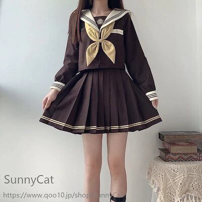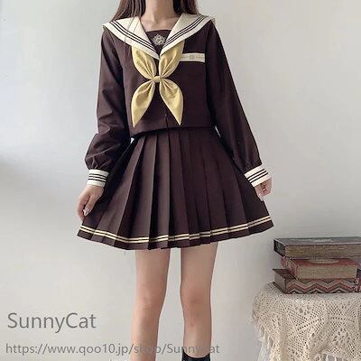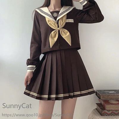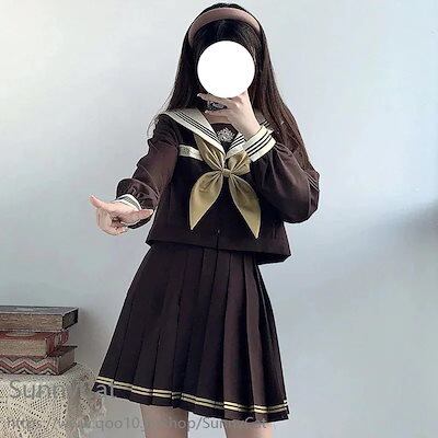 制服 セーラー服 ブラウン 3点セット 長袖 半袖 スカート春 夏 秋 JK 制服 スカート 43cm プリーツスカート スクール 制服 女子高生 学生服 通学 文化祭
