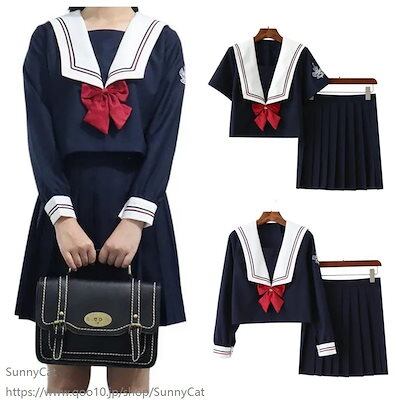 制服 セーラー服 紺色3点セット 長袖 半袖 スカート JK 制服 スカート 43/45/65/80cm プリーツスカート スクール 制服 女子高生 学生服 通学 文化祭 学園祭 コスプレ ハロウィン