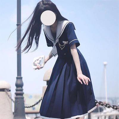 ロリータ コスプレ 2025新作 夏 ロリータ ワンピース jk制服 着痩せ セミロング プリーツスカート セーラー服サンタコスプレ