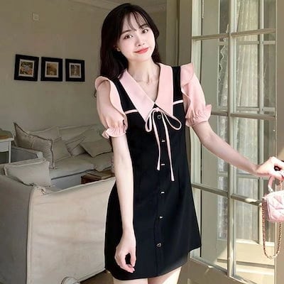 ロリータドレス 2025 春夏 新作 海軍領 ワンピース 着痩せ セーラー服