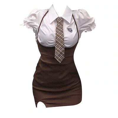 アメリカンスクール風レトロバッグヒップスカートスーツ夏2025ビッグサイズ白シャツスーツ女サンタコスプレ