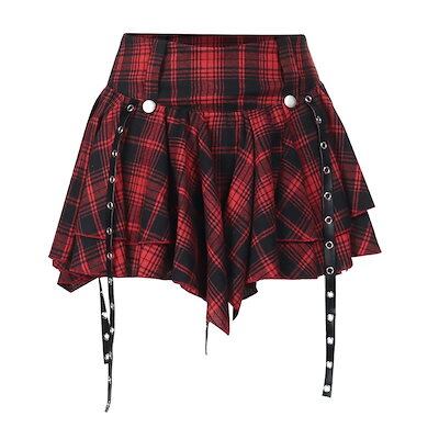 ハロウィンコスプレ 新しいスタイル パッケージヒップ ショートスカート 暗い風 セクシー レッド チェック柄 ハーフスカート