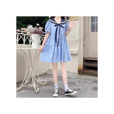 ロリータドレス 2025 春夏 新作 海軍領 セーラー服 プリーツ ワンピース キャンパス風 JK 制服