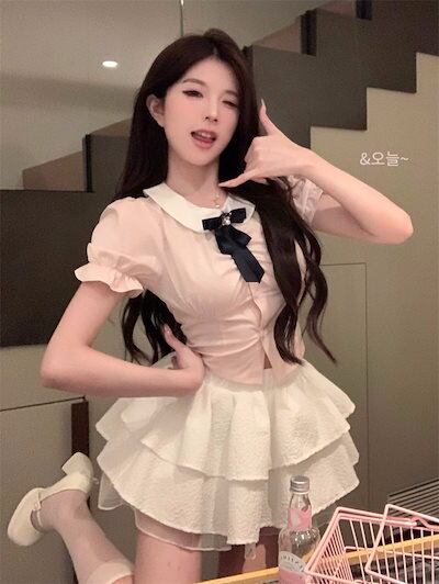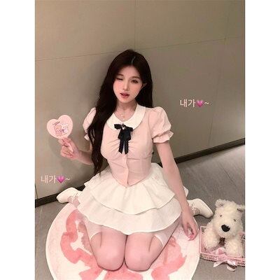 大人気ロリスーツパーティードレス ペパーミントグリーン 上着 ピンク レース ケーキのスカート ポンポンスカート 2点セット 韓国ファッションスプリングスーツ 足が長い やせて見える