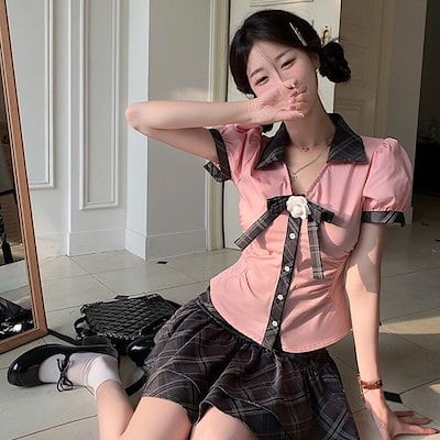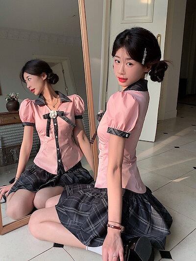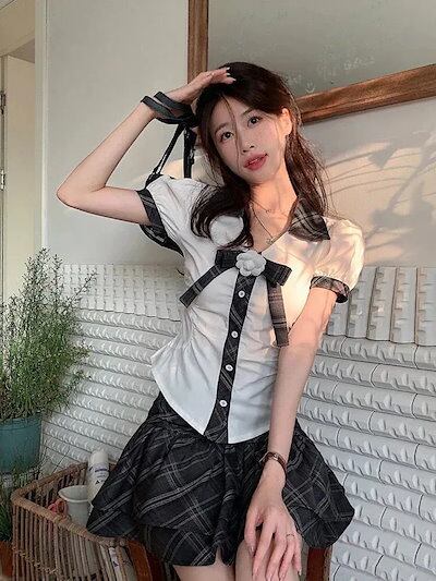 大人気ロリスーツパーティードレス アカデミック jk制服スーツ ギャル 半袖 ショート丈のシャツ ポンポンスカート 韓国ファッションスプリングスーツ 足が長い やせて見える