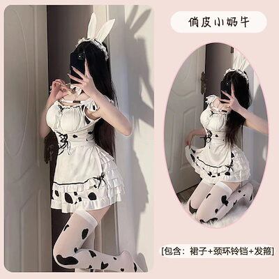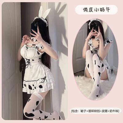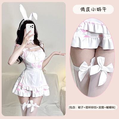 【3日以内に出荷】 エロいコスプレ 新しいエロティックなランジェリーセクシーなピンクのアニメの牛のスーツのメイドウサギの女の子の制服の誘惑の二次スーツ