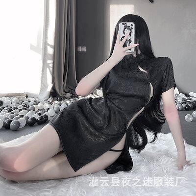 【3日以内に出荷】エロいコスプレ セクシーパジャマ情趣下着セットレトロバッグヒップチャイナドレス制服透かし彫りバンドワンピース