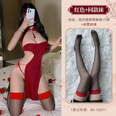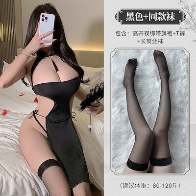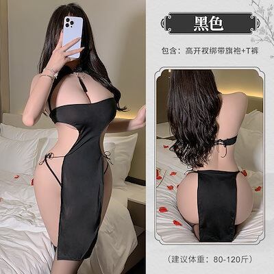 【3日以内に出荷】 エロいコスプレ セクシーなランジェリーセクシーな中空レースチョンサムハイオープンフォークロングスカートナイトガウン制服セット