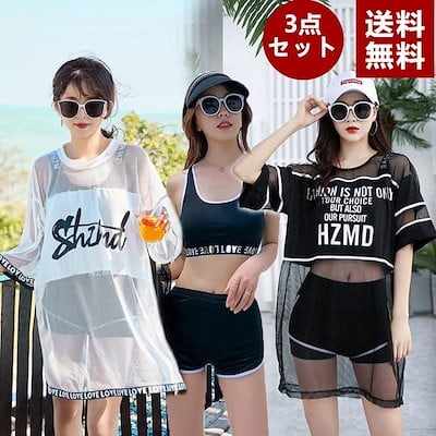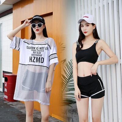 水着新作 レディース 3点セット ビキニ UVカット体型カバー着痩せ 韓風ファッション可愛い ゆったり Tシャツ中学生 高校生スポーツ スポーティー タンキニ ラッシュガード ワンピース 大きいサイズ