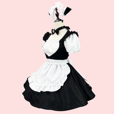 ロリータ猫メイド服 白黒メイドサービス かわいいロリータドレス コスプレ制服