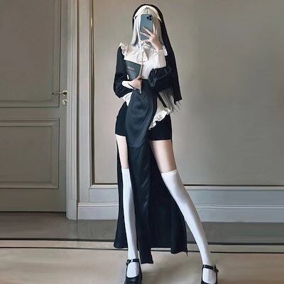ファーウェイ 【【追加料金無】】【7点セット】ハロウィンコスプレシスター服コスプレセクシーレオタード変装コスプレ衣装痩せ見えメイド風ワンピース純欲オーバーサイズ