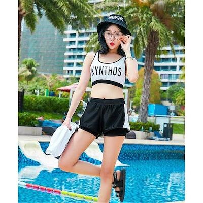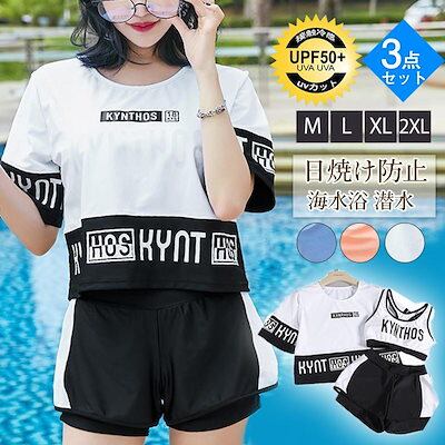 水着 レディース セパレート 3点セット 水着セット パッド付き 日焼け防止 中学生 高校生 体型カバー UVカット 海水浴 潜水 海ビーチ 韓国風 可愛い 温泉