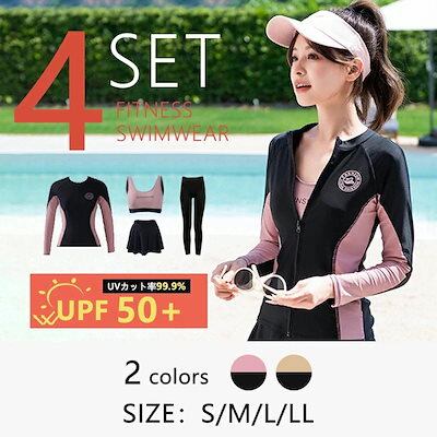水着 体型カバー レディース ラッシュガード 4点セット UPF50+ UVカット ビキニ フィットネス セパレート タンキニ ショートパンツ スカート レギンス付き 大きいサイズ 可愛い 日焼け防