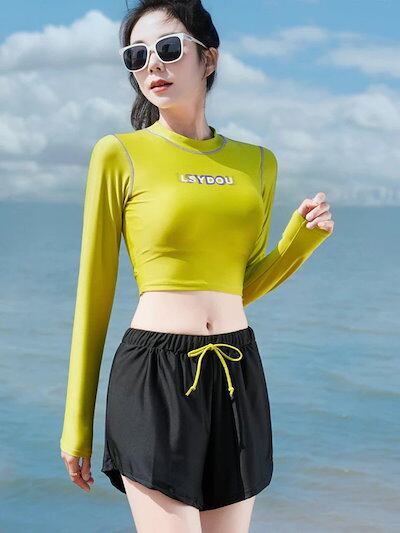 UVカット 長袖 水着 レディース 2点セット体型カバー 水陸両用水着 日焼け防止 ビキニ ラッシュガード水着セット ウェットスーツ サーフィン