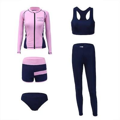 スポーツウェア 女性用 上下セット水着 T 長袖ラッシュガード レディース フィットネスウェア 体型カバー 福袋 UVカット 五点セット 長袖 セットアップ
