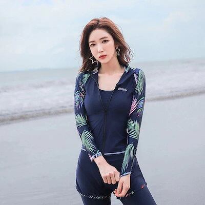 スポーツウェア 上下セット セットアップ サーフィン五点セット 福袋 水着 UVカット ウェットスーツ 体型カバー 女性用 フィットネスウェア レディース 水陸両用 長袖ラッシュガード 長袖 T