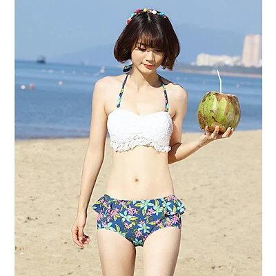 可愛い 水着 花柄レースブラウス スイムウェア バンドゥビキニ 体型カバー ラッシュガードセット 4点セット水着 韓国風 UVカット値下げセール セクシー レディース 【7月の新作特典】水着