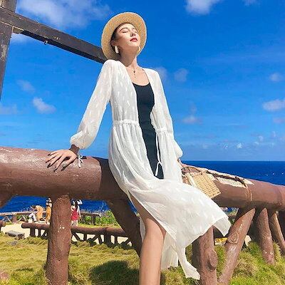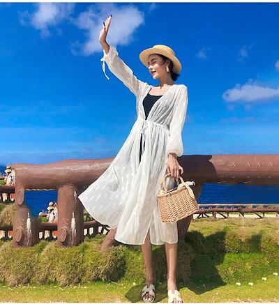 レディース UVカット 【7月の新作特典】白 羽織り 長袖 ガウン 日焼け止め服 カーディガン アウター 紫外線対策 リゾート 体型カバー おしゃれ値下げセール 水着体型カバー ラッシュガード