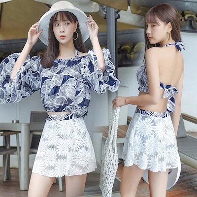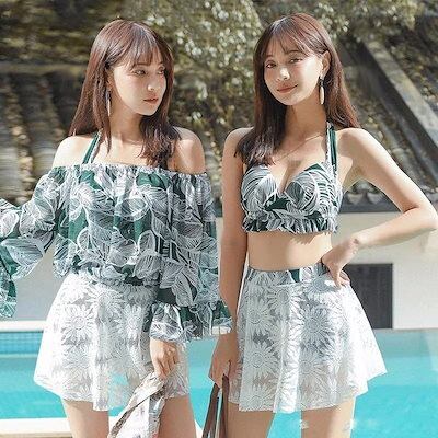 韓国ファッション可愛い タンキニ 3点セット キャミ大きいサイズ 水着 ビキニ ラッシュガード レディース UVカット体型カバー着痩せ