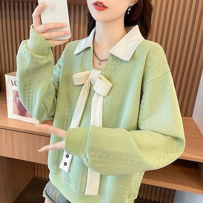 スウェット スウェットシャツ 女子 春秋用 ゆったり 薄手 リボン付き トップス アウター