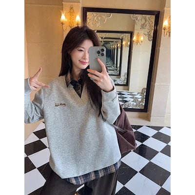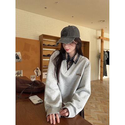 スウェット フェイクツーピース スウェット 男女兼用 秋用 アメリカンスタイル トップス スクール風 カップルコート