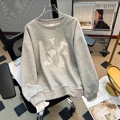 スウェット アメリカン風 丸首スウェット 女子 春秋 ゆったり トップス