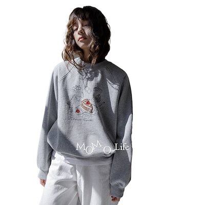 スウェット 風 丸首スウェットシャツ 女性用 秋用 薄手 カジュアル トップス
