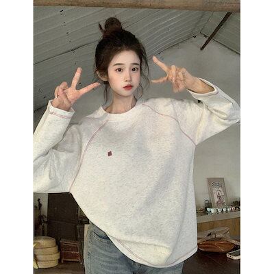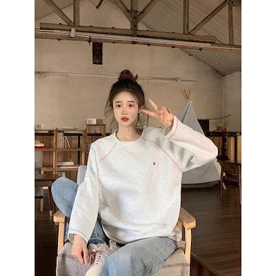スウェット ラウンドネックスウェットシャツ 長袖 春秋用 細身Tシャツ トップス 女性用