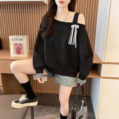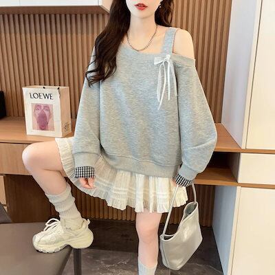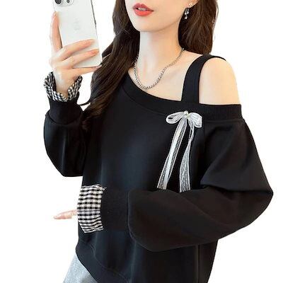 スウェット オフショルダー パーカー レディース ゆったり 春秋用 薄手 ノースリーブ トップス