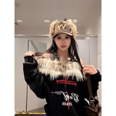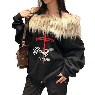 スウェット アメリカンスタイル オフショルダー 長袖 スウェットシャツ 女性用 秋冬 カジュアル トップス