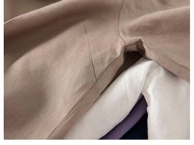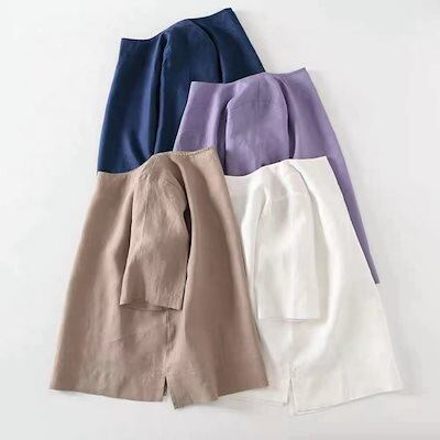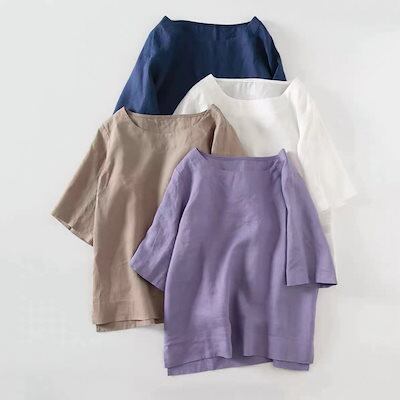 体型カバーチュニック$$リネン素材トップス 日系 ランタン袖 セミロング トップス おしゃれ かっこいい Tシャツ カジュアル