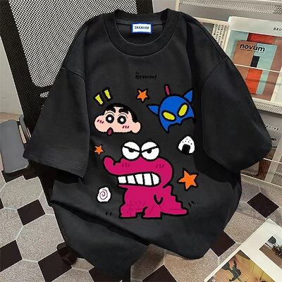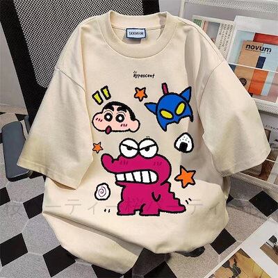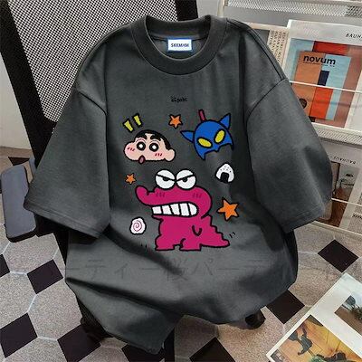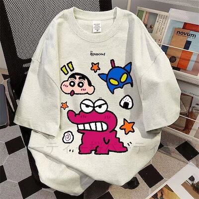 【即納!】【本日限定】クレヨンしんちゃんアメリカ純綿半袖Tシャツ男女夏爆金プリント男女同じゆったり100着通気性カップルトップス