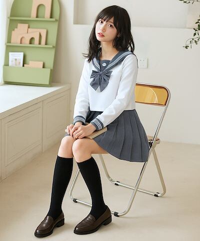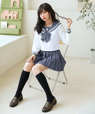 新品限時!優!惠! ハロウィン コスプレ 制服 セーラー服 長袖 大人 ブラウス クロップド丈 スカート リボン セット 3点セット S M L 2L ホワイト グレー 女子高生 高校生 中学生 学生