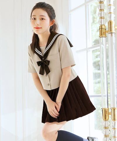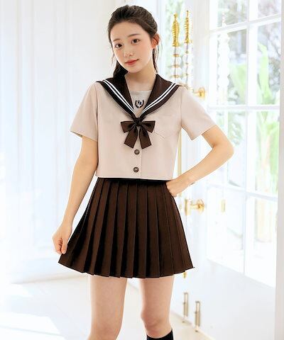 新品限時!優!惠! ハロウィン コスプレ 制服 セーラー服 半袖 大人 ブラウス クロップド丈 スカート リボン セット 3点セット S M L 2L ブラウン 茶色 女子高生 高校生 中学生 学生