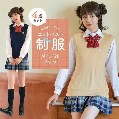 新品限時!優!惠! ハロウィン コスプレ コスプレ 制服 長袖 ニットベスト ベスト 仮装 コスチューム 男ウケ セクシー 大きいサイズ 大人女子高生 学生服 JK制服 定番 レディース スクール リ