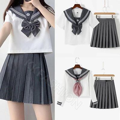 制服 灰色襟+白色 長袖 半袖 セーラー服 ミニスカート スクール 制服 女子高生 高校生 学生服 文化祭 学園祭 イベント コスプレ ハロウィン 仮装 コスム 服 服794424