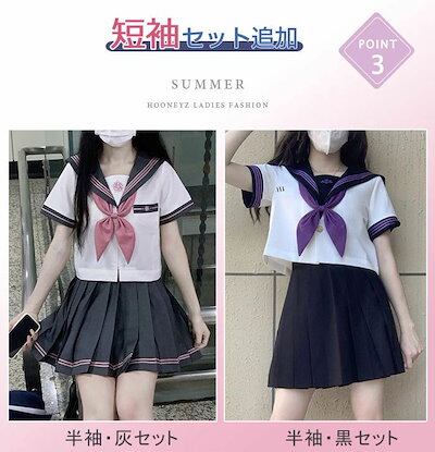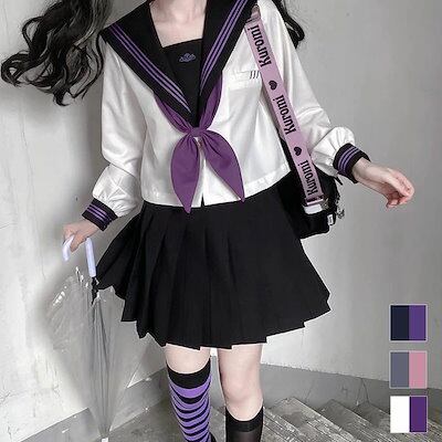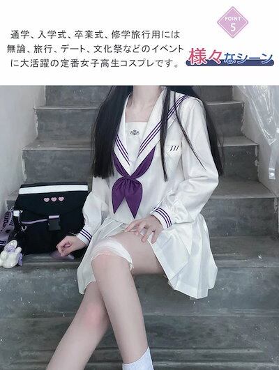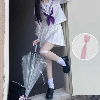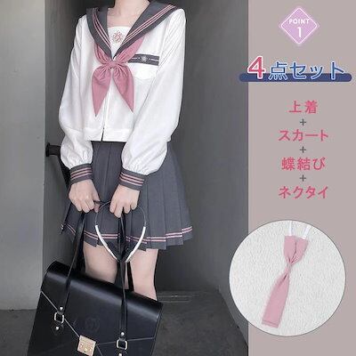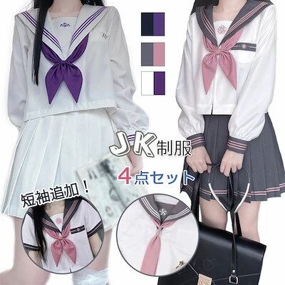 セーラー服 女子高生 JK制服 中学生 コスプレ ハロウィン 仮装 プリーツスカート 長袖短袖 4点セット スカート+シャツ+蝶結ぶ+ネクタイ 女性 コスチューム 本格制服 文化祭 学?歳 入学式 卒