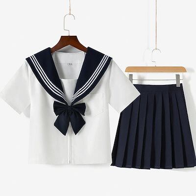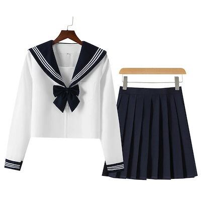 42CM65CM80CM 4点セット 制服 紺色+白色 長袖 半袖 セーラー服 スクール 制服 女子高生 高校生 学生服 文化祭 学園祭 イベント コスプレ ハロウィン 仮装 コスム