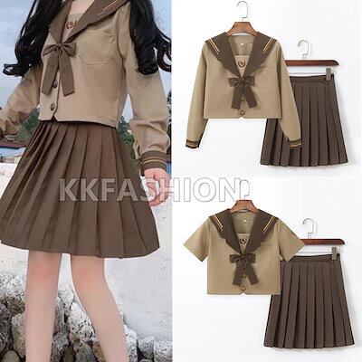 ブラウン 制服 長袖 半袖 セーラー服 ミニスカート スクール 制服 女子高生 高校生 学生服 文化祭 学園祭 コスプレ ハロウィン 仮装 コスム レディース 服 服